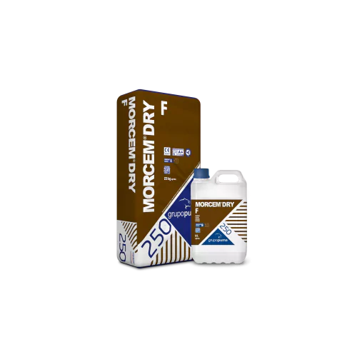 Morcem Dry F es un mortero cementoso impermeabilizante, indicado para piscinas, depósitos, fosos, sótanos y otras estructuras sometidas a presión de agua. Su aplicación crea una barrera continua frente a filtraciones, permitiendo proteger superficies verticales u horizontales en contacto permanente con la humedad.